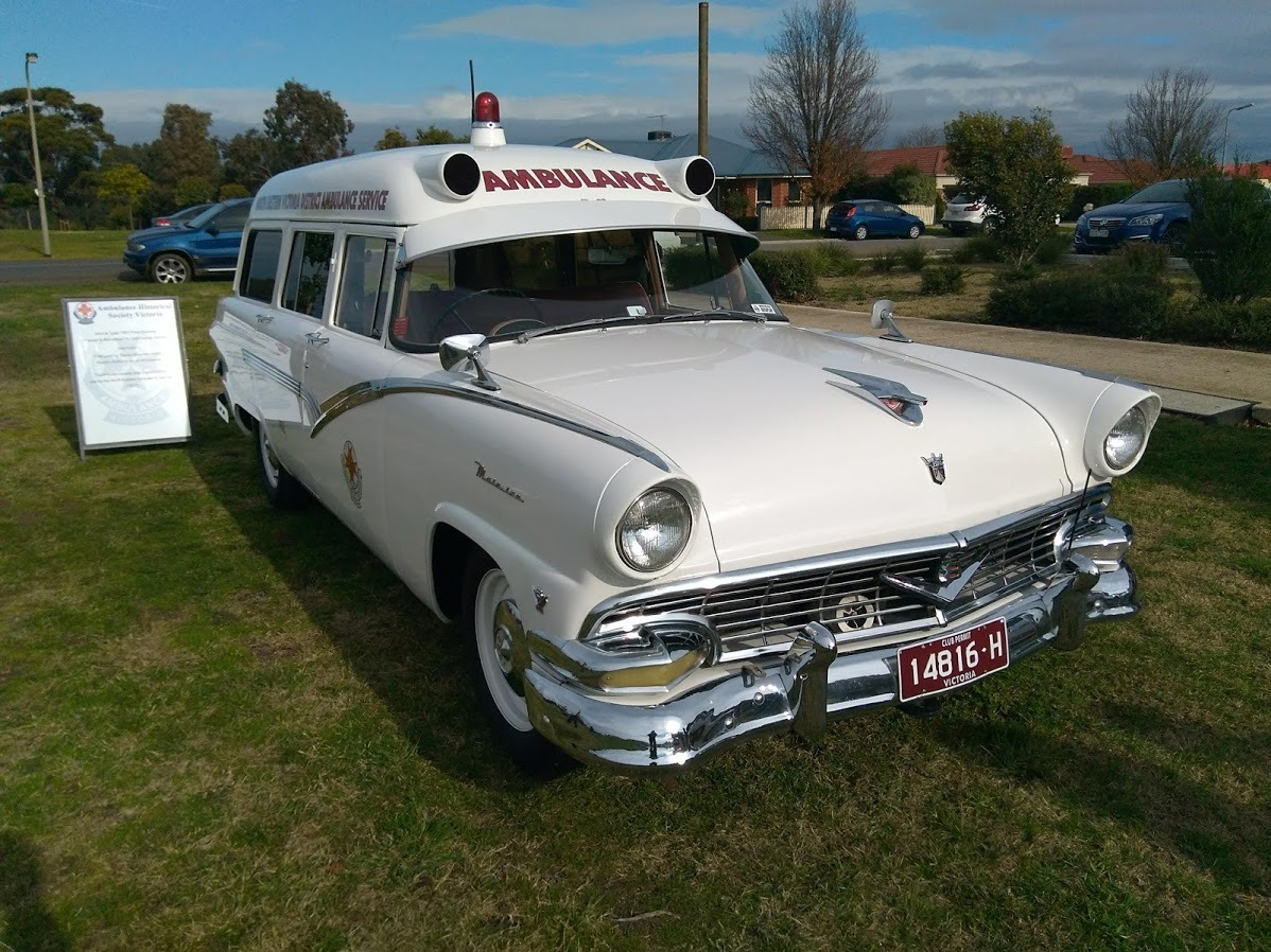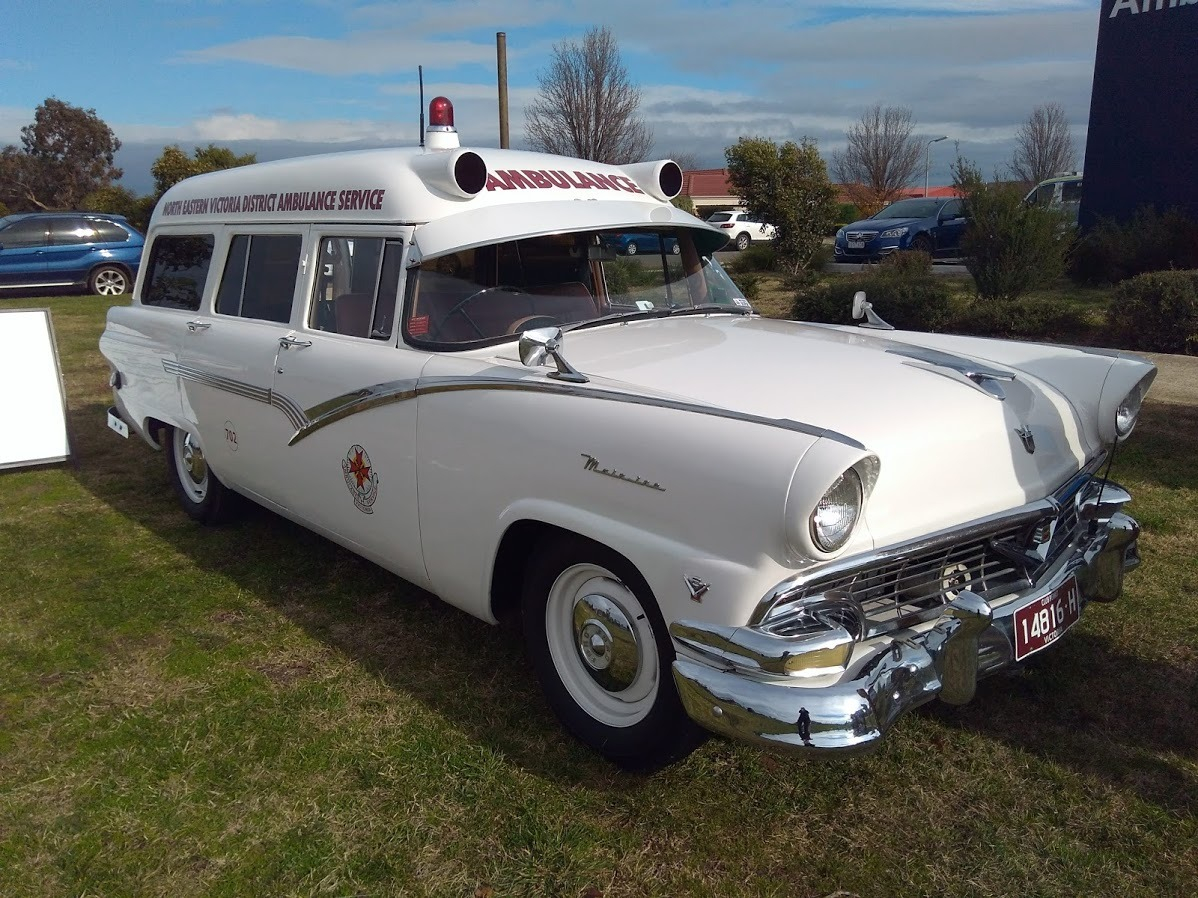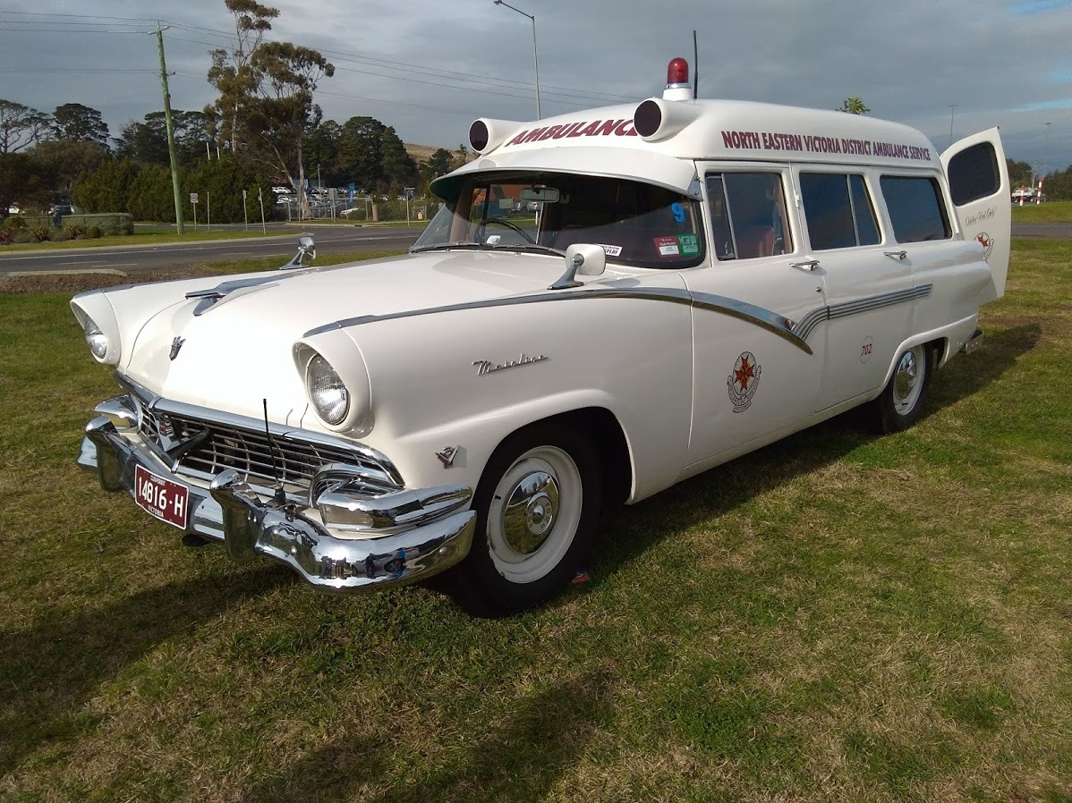 AMBULANCE VICTORIA 1957 FORD MAINLINE V8. 4.5-4.8 LITRE V8 ENGINE. 3 SPEED MANUAL TRANSMISSION.