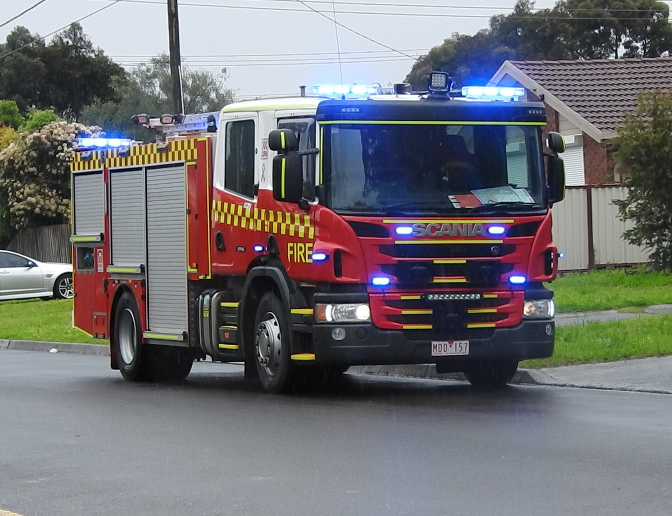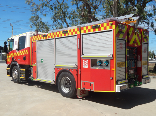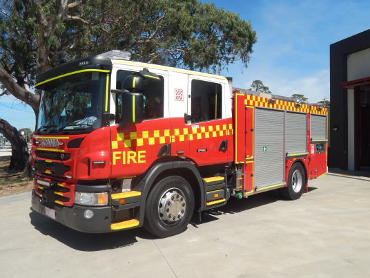 CFA FORMER PROTOTYPE MEDIUM PUMPER. SCANIA P280 CREW CAB. PUMP MAKE/MODEL: GODIVA P1B 4000. WATER TANK CAPACITY: 2500 LITRES. FOAM TANK CAPACITY: 50 LITRES CLASS A & 300 LITRES CLASS B. ENTERED SERVICE: PROTOTYPE 2014-2016. LAKES ENTRANCE CFA 2016-PRESENT.