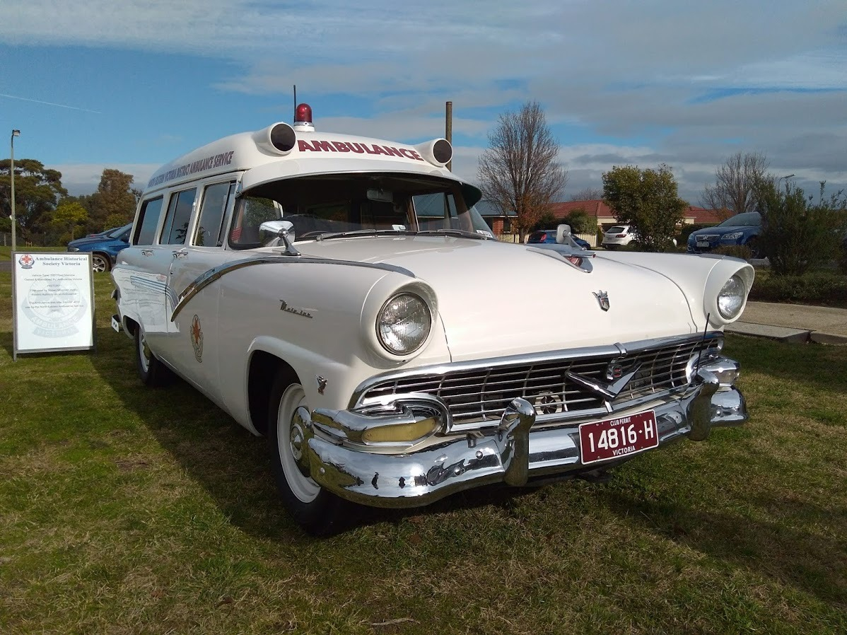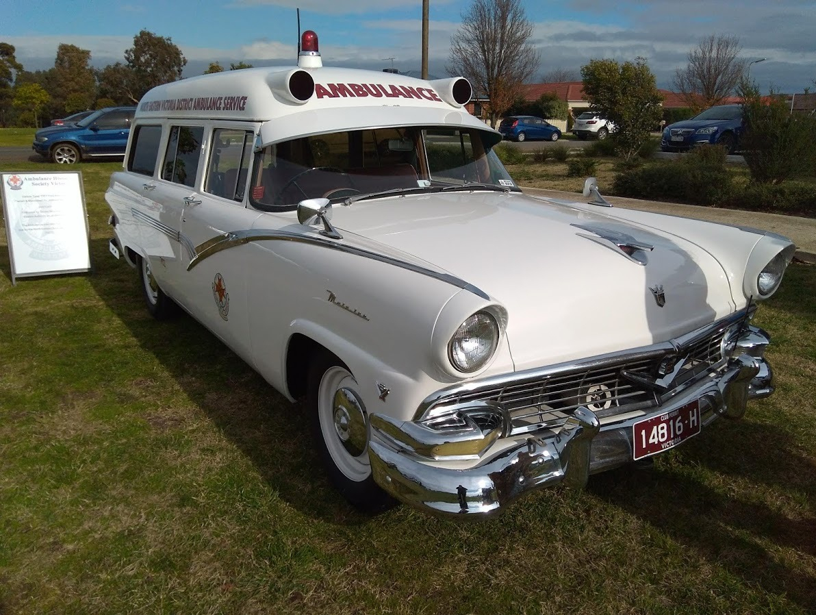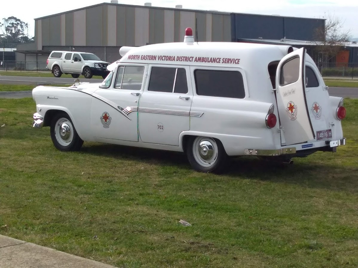 AMBULANCE VICTORIA 1957 FORD MAINLINE V8. 4.5-4.8 LITRE V8 ENGINE. 3 SPEED MANUAL TRANSMISSION.