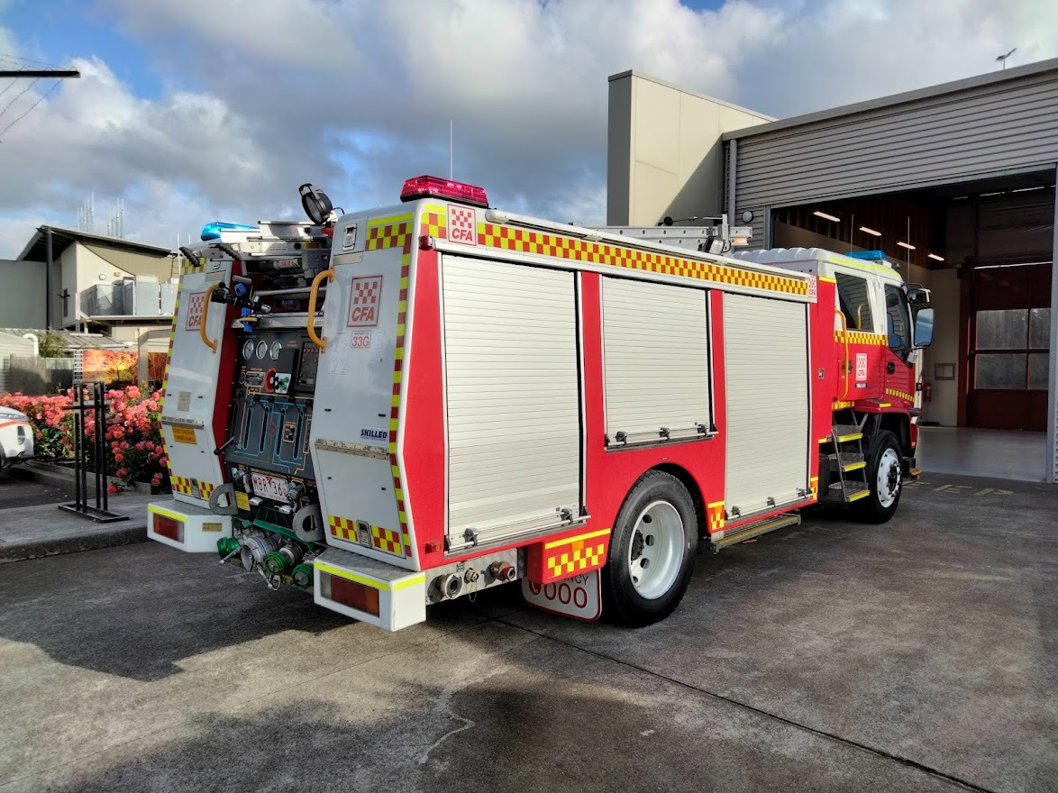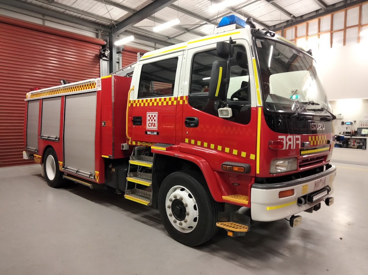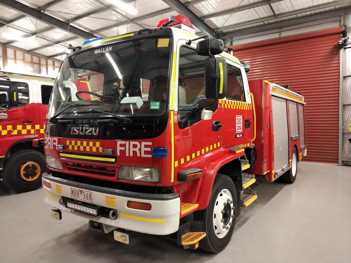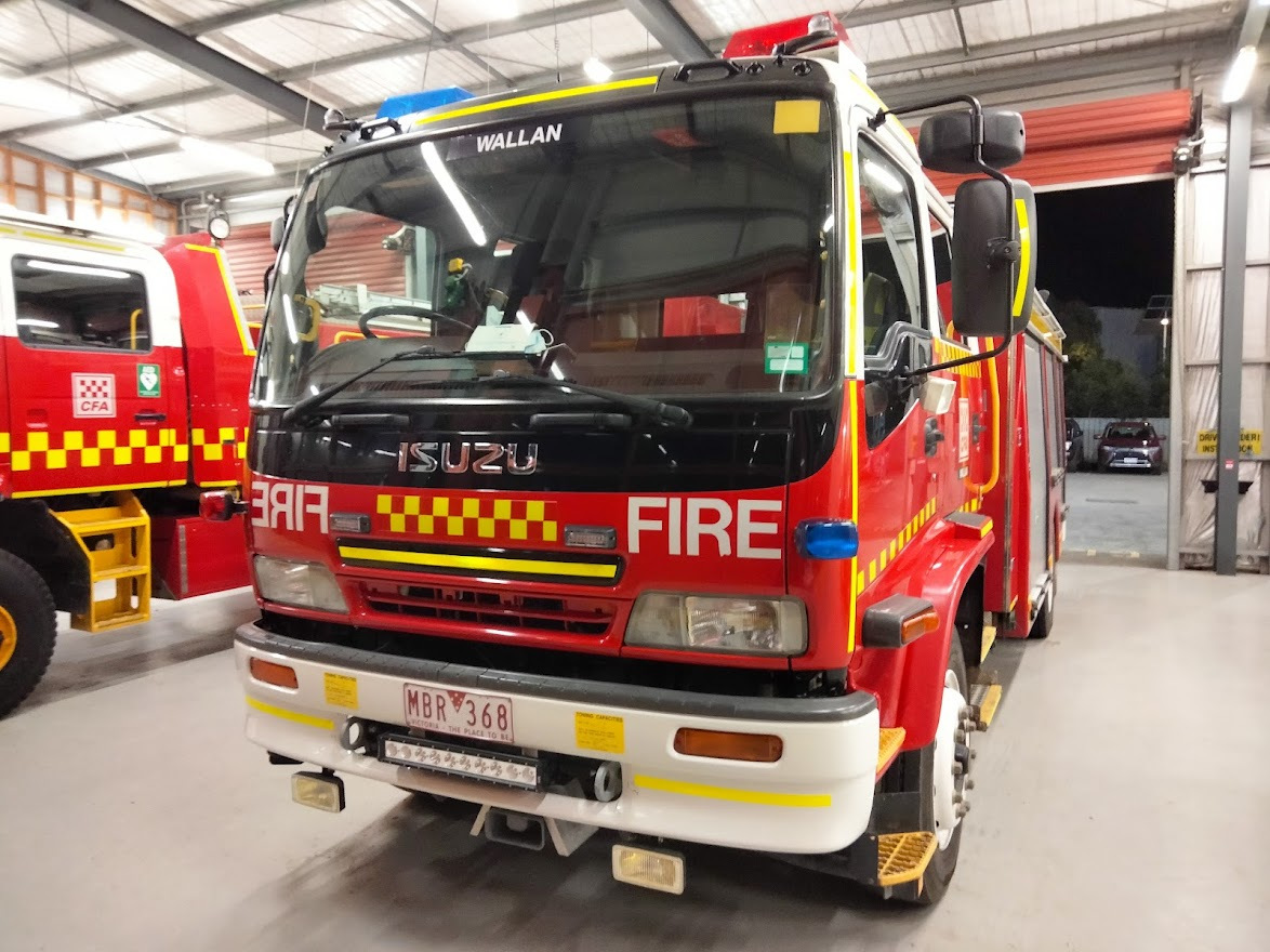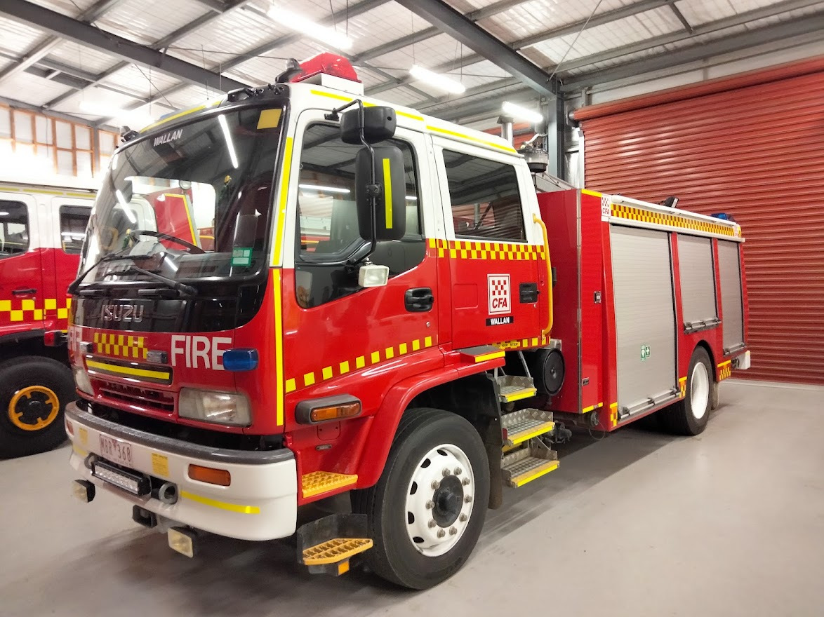 CFA WALLAN TYPE 3 MEDIUM PUMPER. ISUZU FTR900 CREW CAB. PUMP MAKE/MODEL: ROSENBAUER NH30. WATER TANK CAPACITY: 2000 LITRES. FOAM TANK CAPACITY: 100 LITRES CLASS A & 200 LITRES CLASS B. ENTERED SERVICE: DIAMOND CREEK 2004-2016. DISTRICT 14 SPARE 2016-2021. WALLAN 2021-PRESENT.