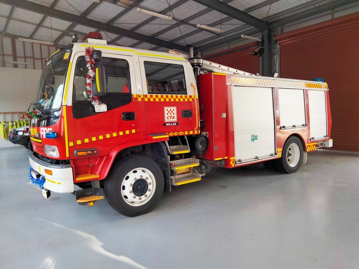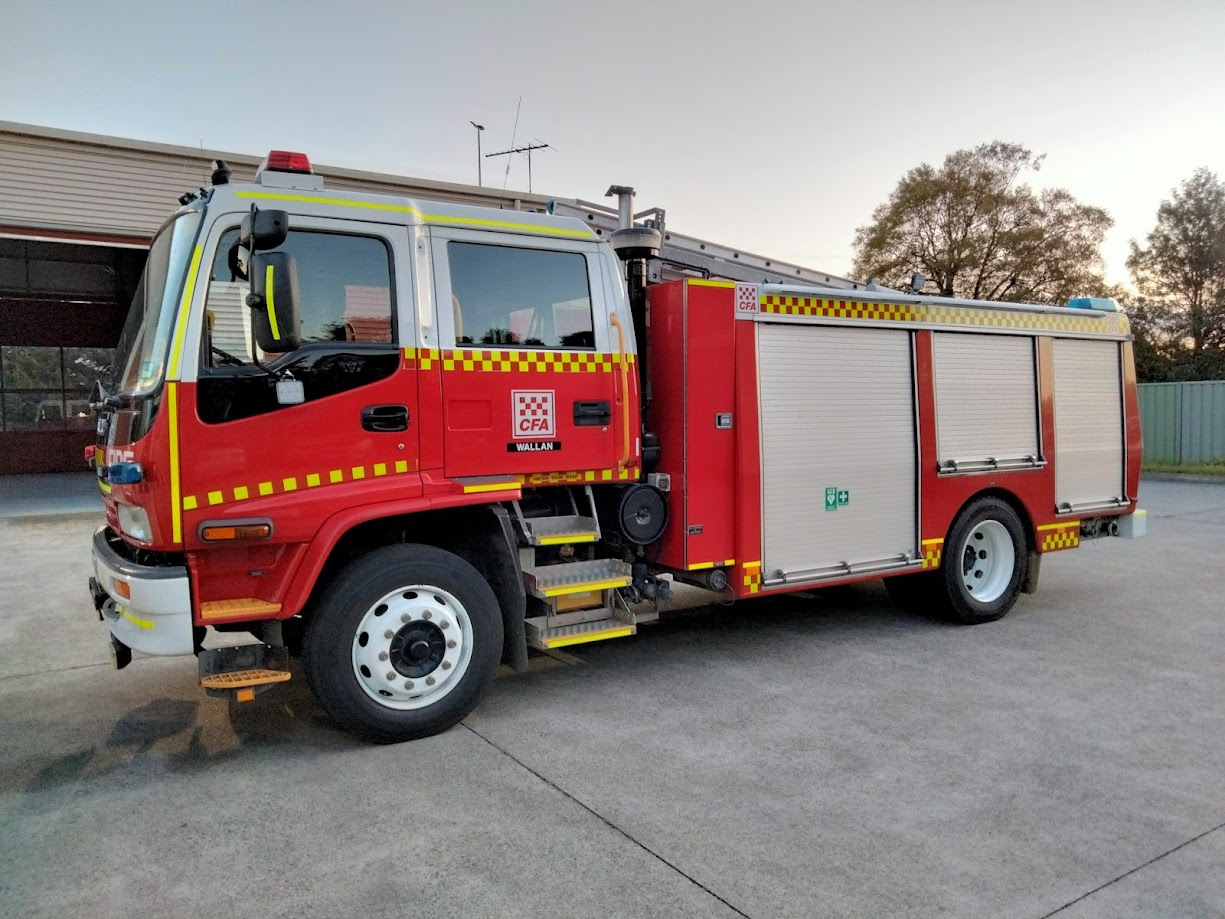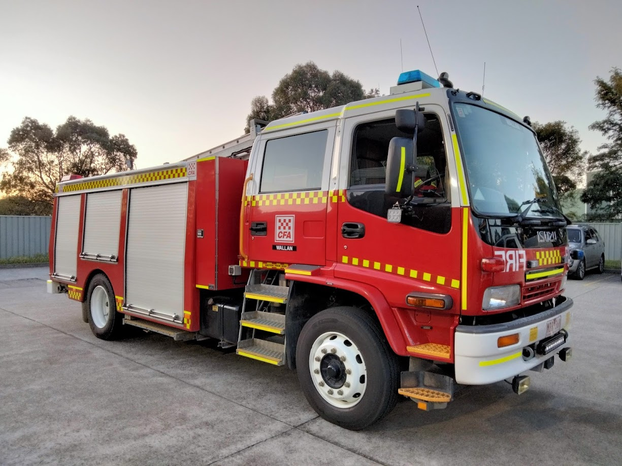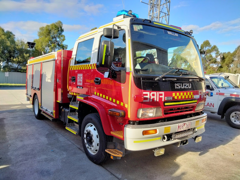 CFA WALLAN TYPE 3 MEDIUM PUMPER. ISUZU FTR900 CREW CAB. PUMP MAKE/MODEL: ROSENBAUER NH30. WATER TANK CAPACITY: 2000 LITRES. FOAM TANK CAPACITY: 100 LITRES CLASS A & 200 LITRES CLASS B. ENTERED SERVICE: DIAMOND CREEK 2004-2016. DISTRICT 14 SPARE 2016-2021. WALLAN 2021-PRESENT.