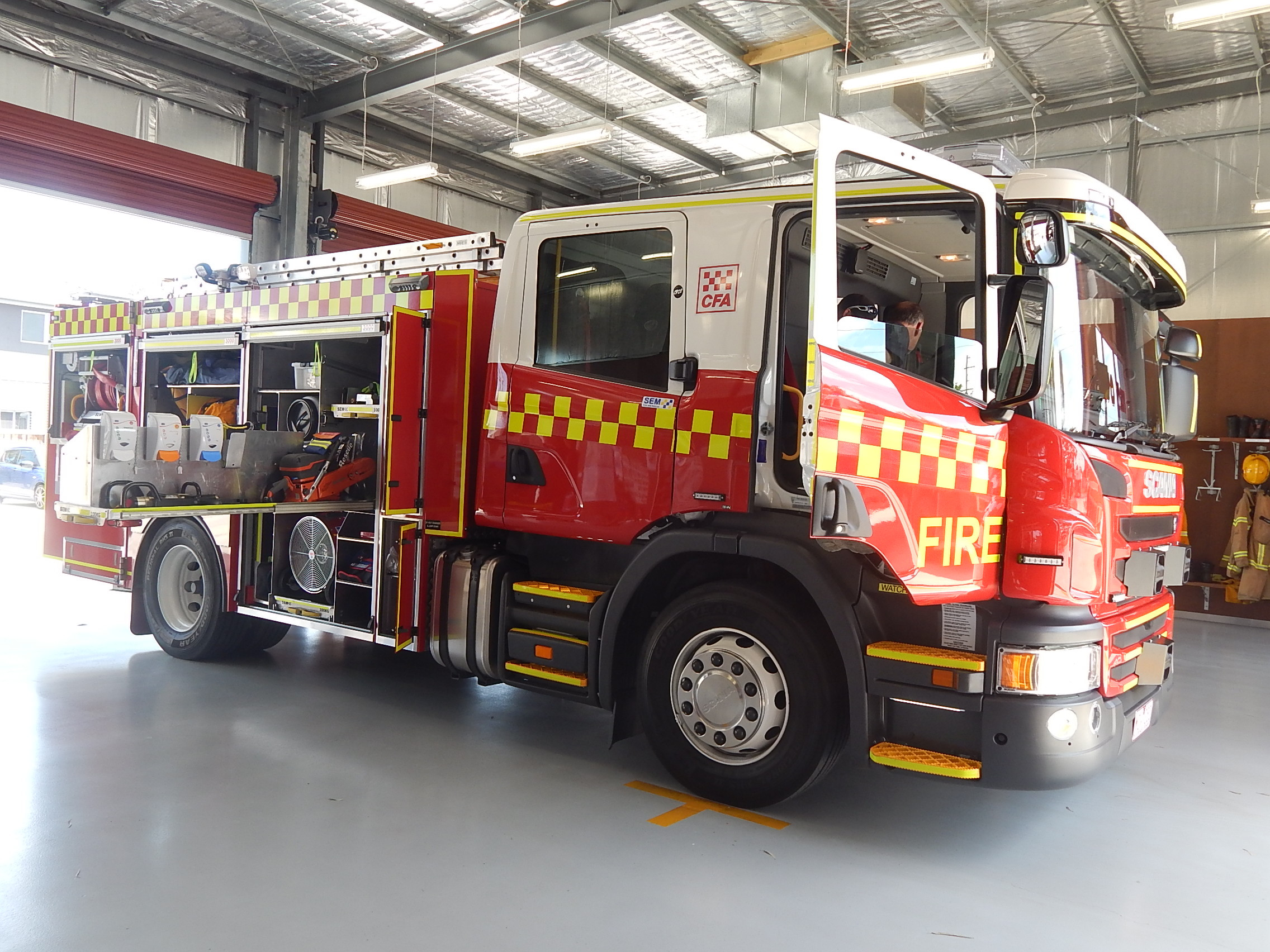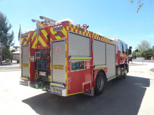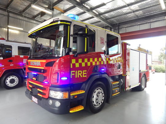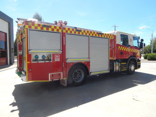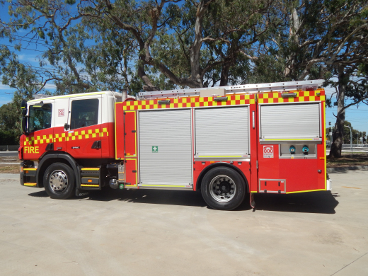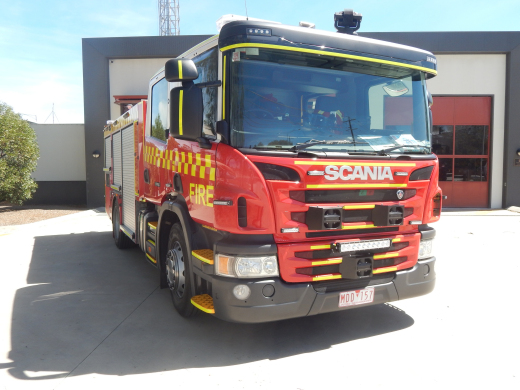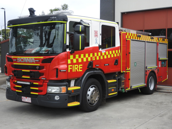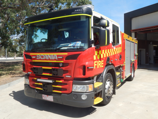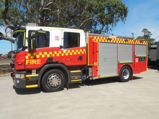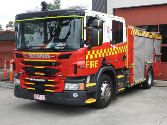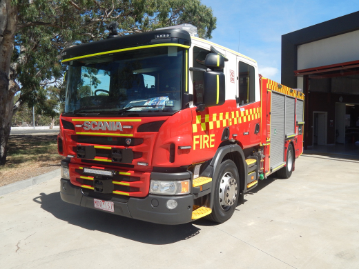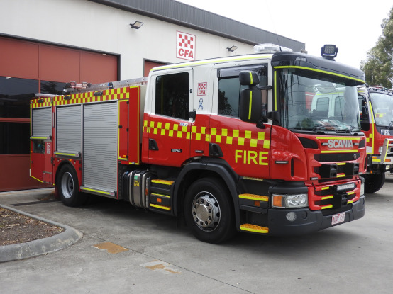CFA FORMER PROTOTYPE MEDIUM PUMPER. SCANIA P280 CREW CAB. PUMP MAKE/MODEL: GODIVA P1B 4000. WATER TANK CAPACITY: 2500 LITRES. FOAM TANK CAPACITY: 50 LITRES CLASS A & 300 LITRES CLASS B. ENTERED SERVICE: PROTOTYPE 2014-2016. LAKES ENTRANCE CFA 2016-PRESENT.