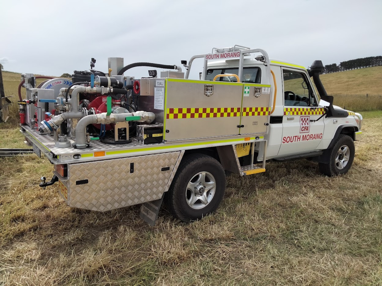 CFA SOUTH MORANG ULTRA LIGHT TANKER. TOYOTA LAND CRUISER SINGLE CAB. PUMP MAKE/MODEL: GAAM MK70.